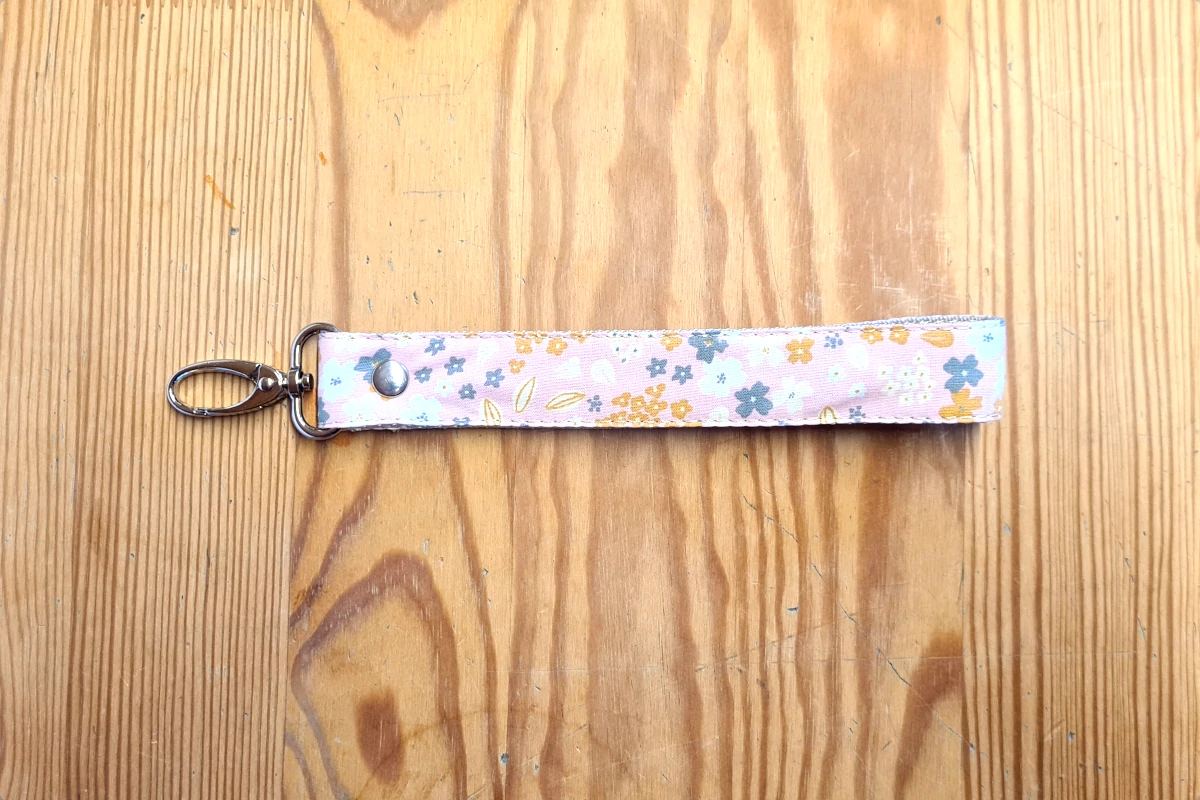 Ten brelok to mały, ale praktyczny dodatek, który możesz nosić na nadgarstku lub przypiąć do torby. Wykonany z wytrzymałej taśmy nośnej i resztek tkanin, które zostają po szyciu naszych większych akcesoriów – nic się nie marnuje!