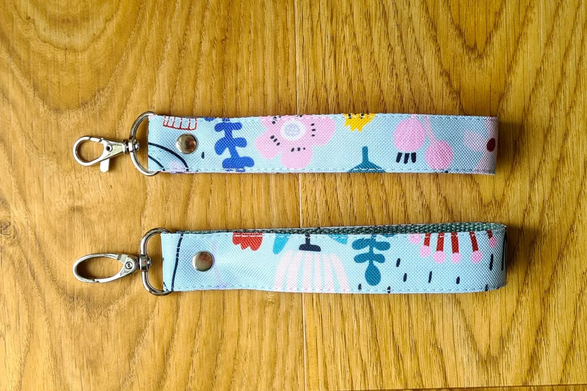 Ten brelok to mały, ale praktyczny dodatek, który możesz nosić na nadgarstku lub przypiąć do torby. Wykonany z wytrzymałej taśmy nośnej i resztek tkanin, które zostają po szyciu naszych większych akcesoriów – nic się nie marnuje!