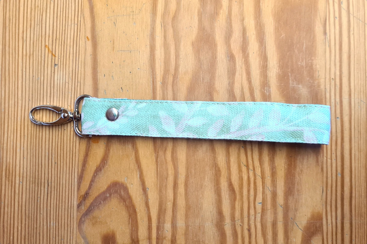 Ten brelok to mały, ale praktyczny dodatek, który możesz nosić na nadgarstku lub przypiąć do torby. Wykonany z wytrzymałej taśmy nośnej i resztek tkanin, które zostają po szyciu naszych większych akcesoriów – nic się nie marnuje!