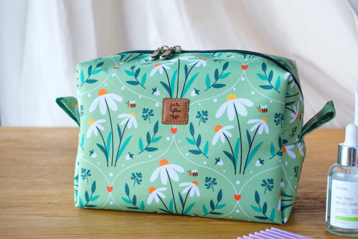 Idealna na wyjazdy i do codziennego użytku – kosmetyczka typu box pomieści wszystko, czego potrzebujesz. Ma sztywniejszy fason, który trzyma formę i pozwala utrzymać porządek, a wodoodporna podszewka chroni wnętrze przed wilgocią i zabrudzeniami.