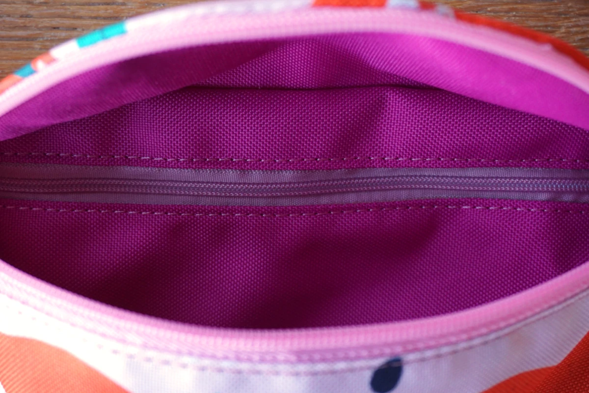 Uszyta z praktycznej tkaniny wodoodpornej i wykończona wodoodporną podszewką, ta średnia nerka to idealny kompromis między kompaktową formą a optymalną pojemnością. Pomieści telefon, nieduży portfel, mały notes i inne drobiazgi.