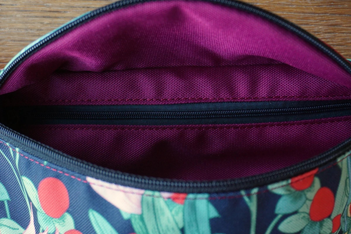 Uszyta z praktycznej tkaniny wodoodpornej i wykończona wodoodporną podszewką, ta średnia nerka to idealny kompromis między kompaktową formą a optymalną pojemnością. Pomieści telefon, nieduży portfel, mały notes i inne drobiazgi.